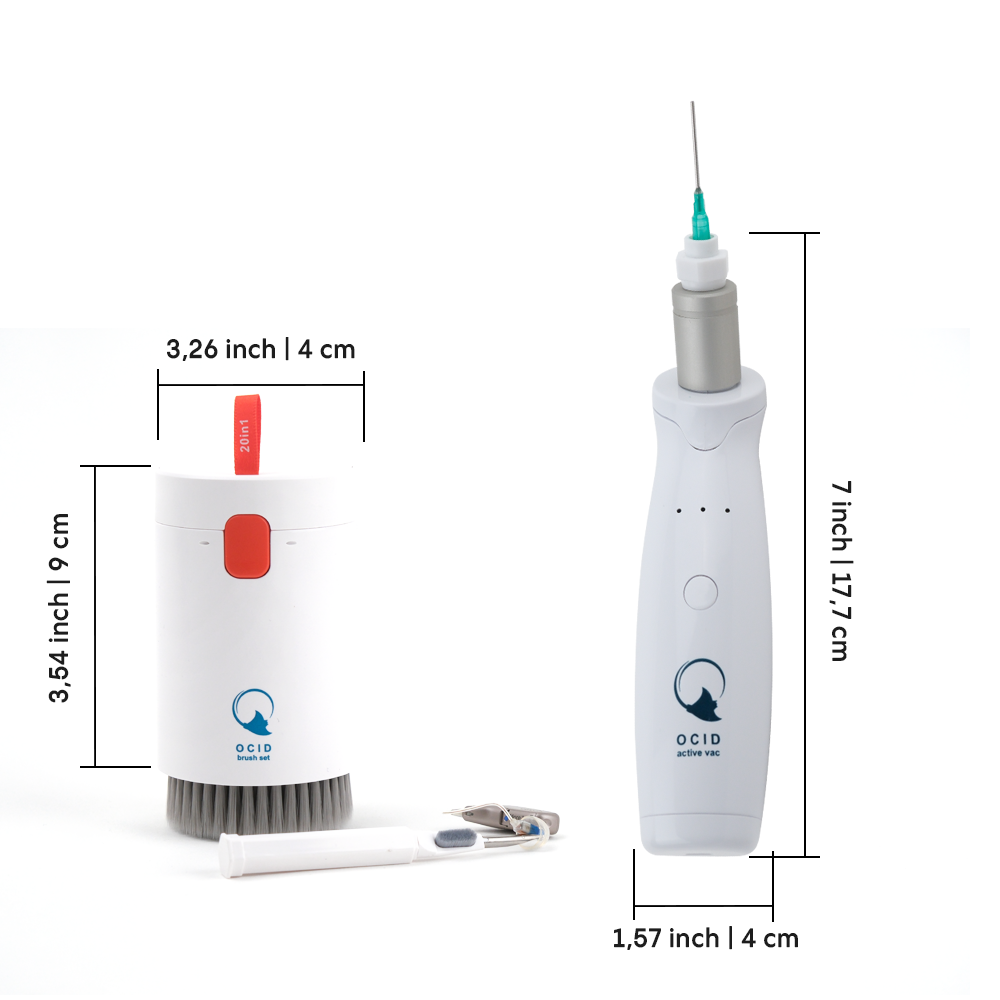 The Ocid Vakuum is a multifunctional device that includes a hearing aid, apple watch, airpods, camera lens, vacuum cleaner, and brush. With its compact design and powerful features, it will improve your hearing, keep you connected, capture high-quality photos, and easily clean small dust particles. Experience convenience and efficiency with the Ocid Vakuum.